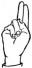 На ћирилици написано ФИЛОТИЈЕ ВАРИНАЦ састоји се из 15 слова [?]. Исписано ћириличном једноручном азбуком за глувонеме:
